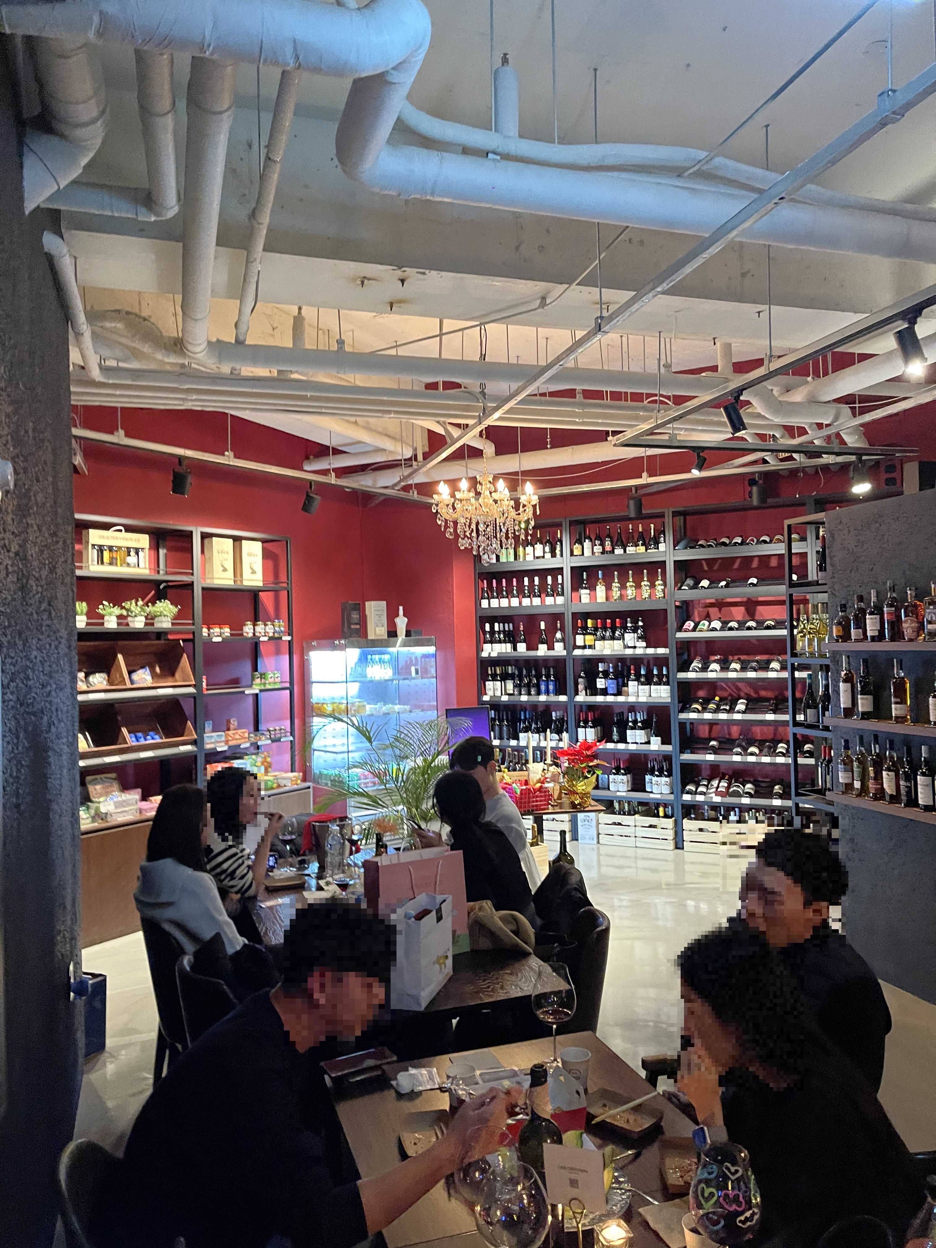 와인 & 주류가 200여 종 있고, 벽면에서 골라서 카운터에서 계산하고 가지고 오면 되는 구조에요. 가격대가 다양하게 있어서 비교적 저렴하게 마실 수 있었습니다^^