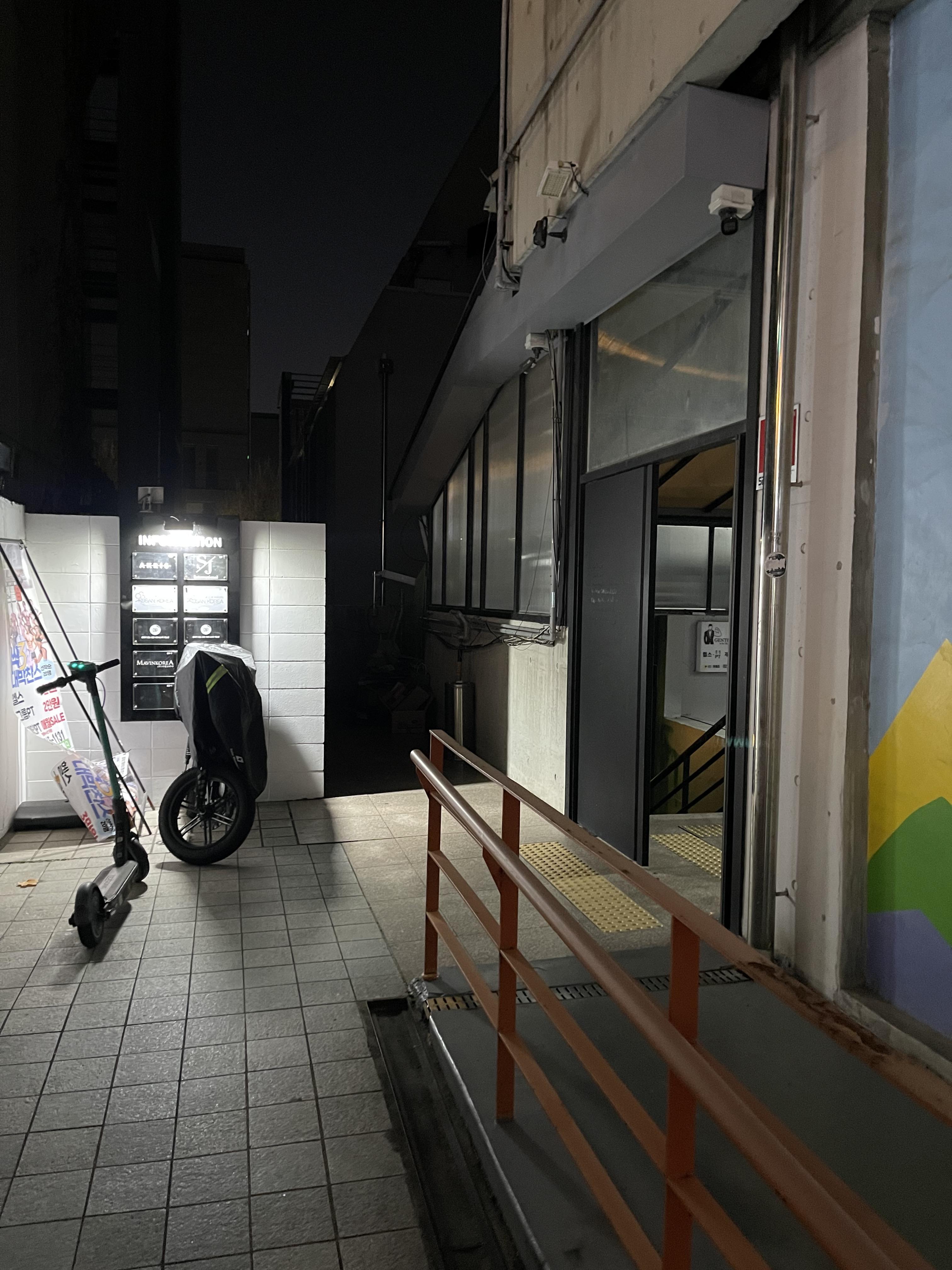 계단으로 내려가시면 왼쪽에 큰 문이 있는데요, 입구이니 당황하지 마시고 들어가시면 됩니다.