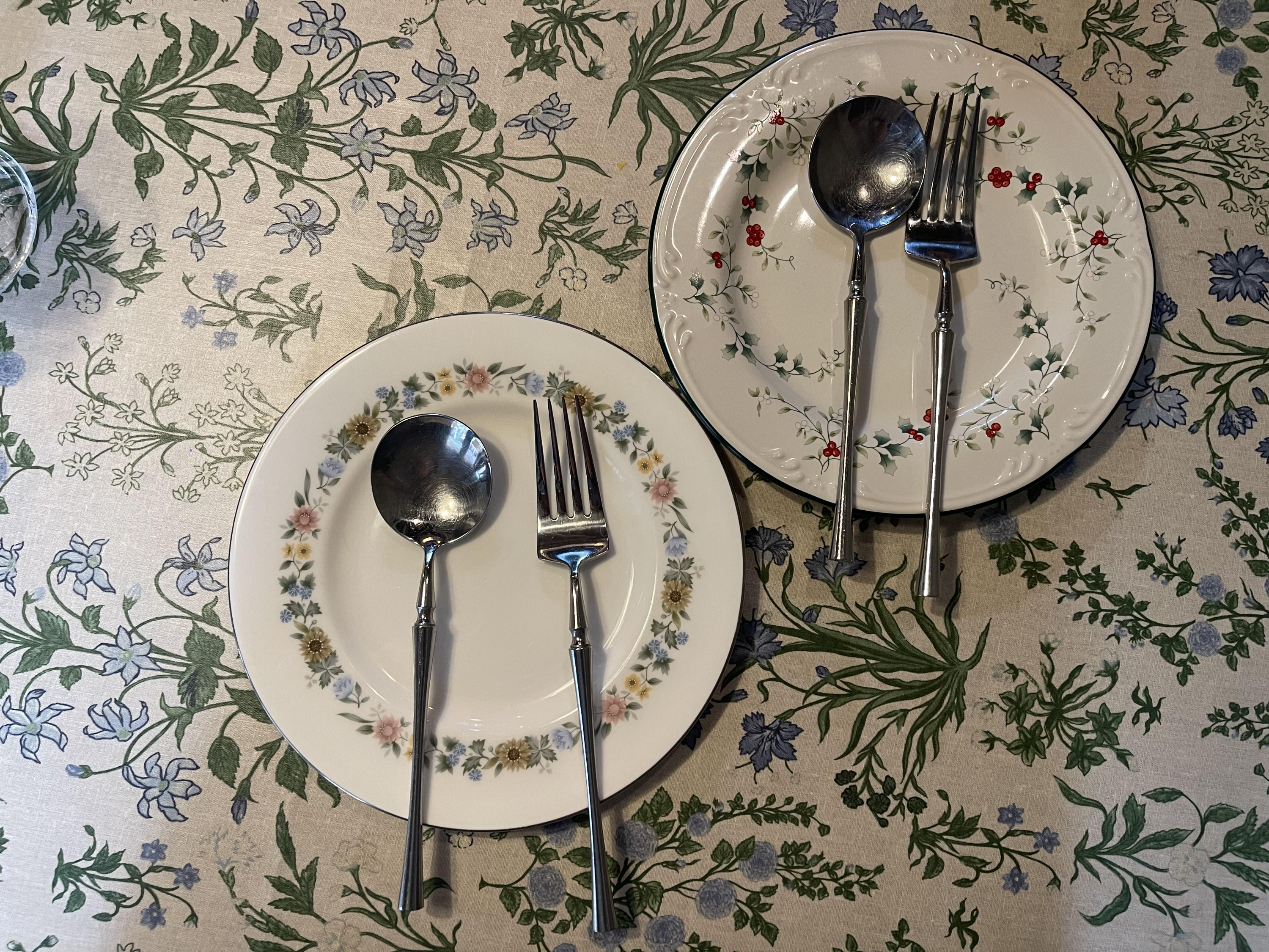 여자친구가 맘에 들어했던 식탁보와 그릇이에요. 여자친구가 꽃을 좋아하는데 식탁보와 그릇이 예쁜 꽃무늬로 돼있어서 한컷 찍어봤어요~