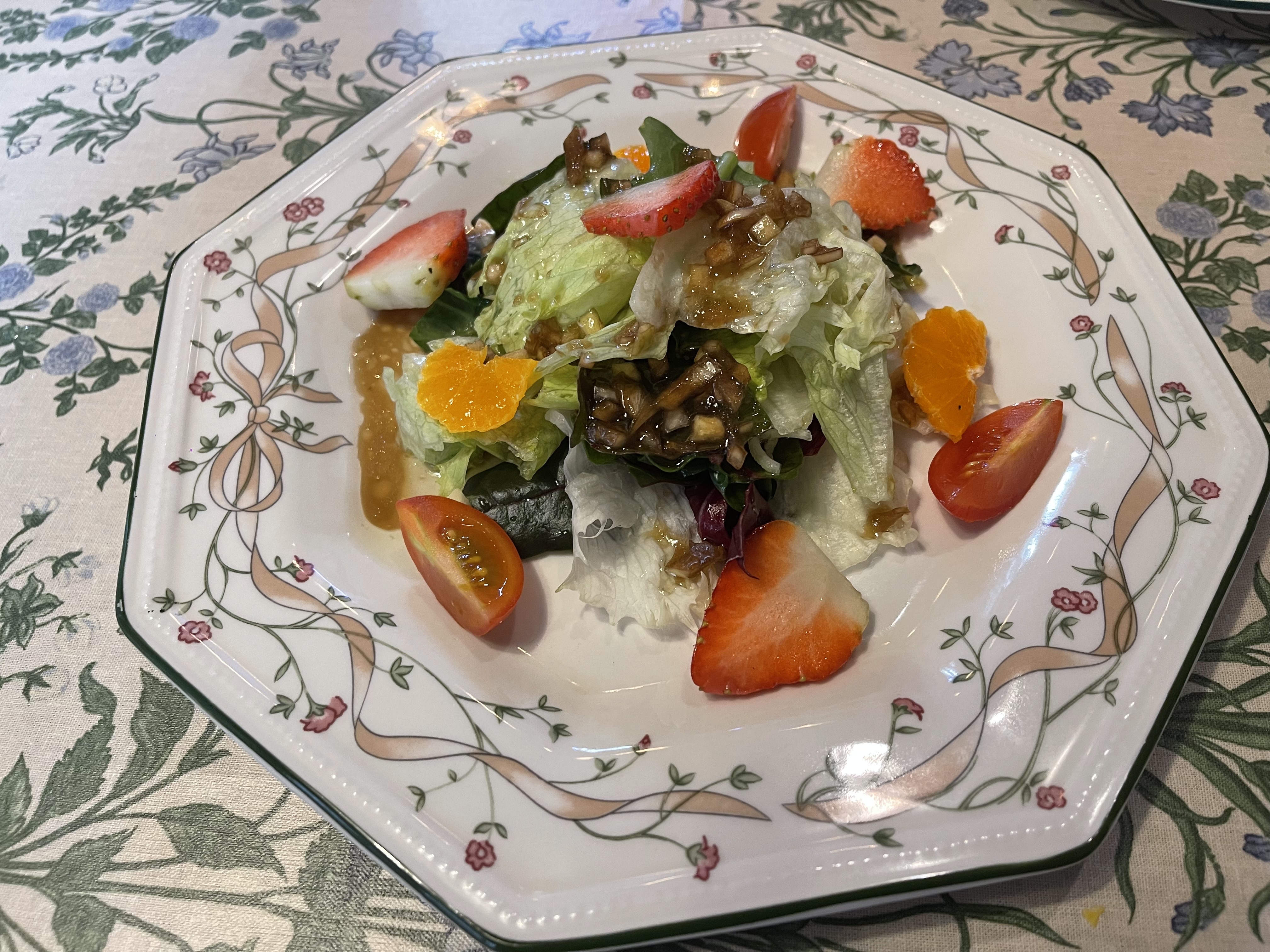 서비스로 나왔던 샐러드와 구운빵이에요. 샐러드에 귤과 딸기가 있어서 자취생이 오랜만에 과일섭취할 수 있었어요. 구운빵도 서비스로 주셨는데요, 사장님이 뇨끼에 찍어먹으면 좋다고 추천해주셨어요.