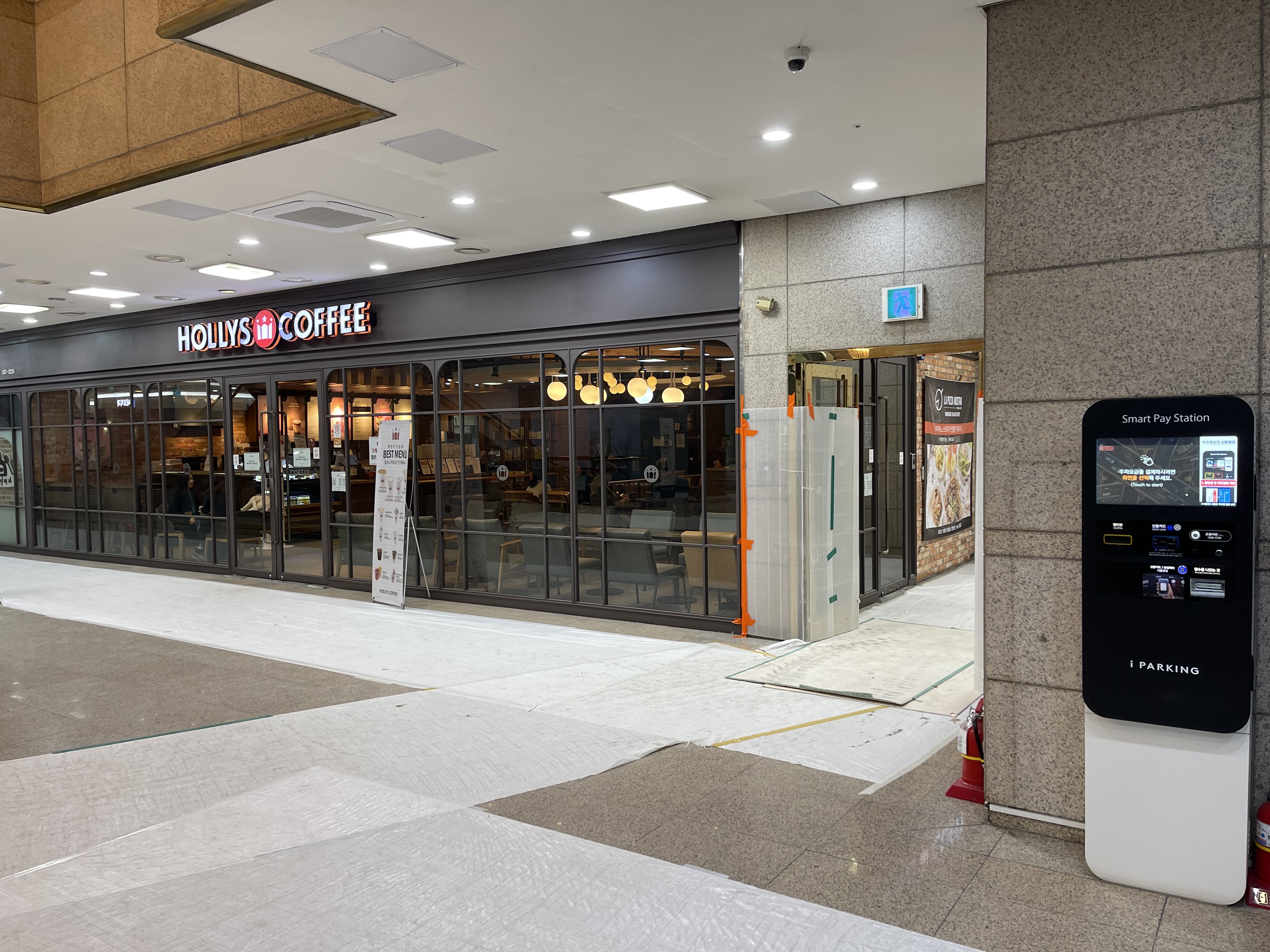 웨딩홀 정문으로 들어오니 할리스커피가 오른편에 보였고 식장으로 올라가는 에스컬레이터가 보였어요. 현재 운행은 하지 않지만 조만간 운행할 예정이라고 해요. 참고로 상담실은 지하 1층에 있으니 올라가실 필요는 없답니다 ^^