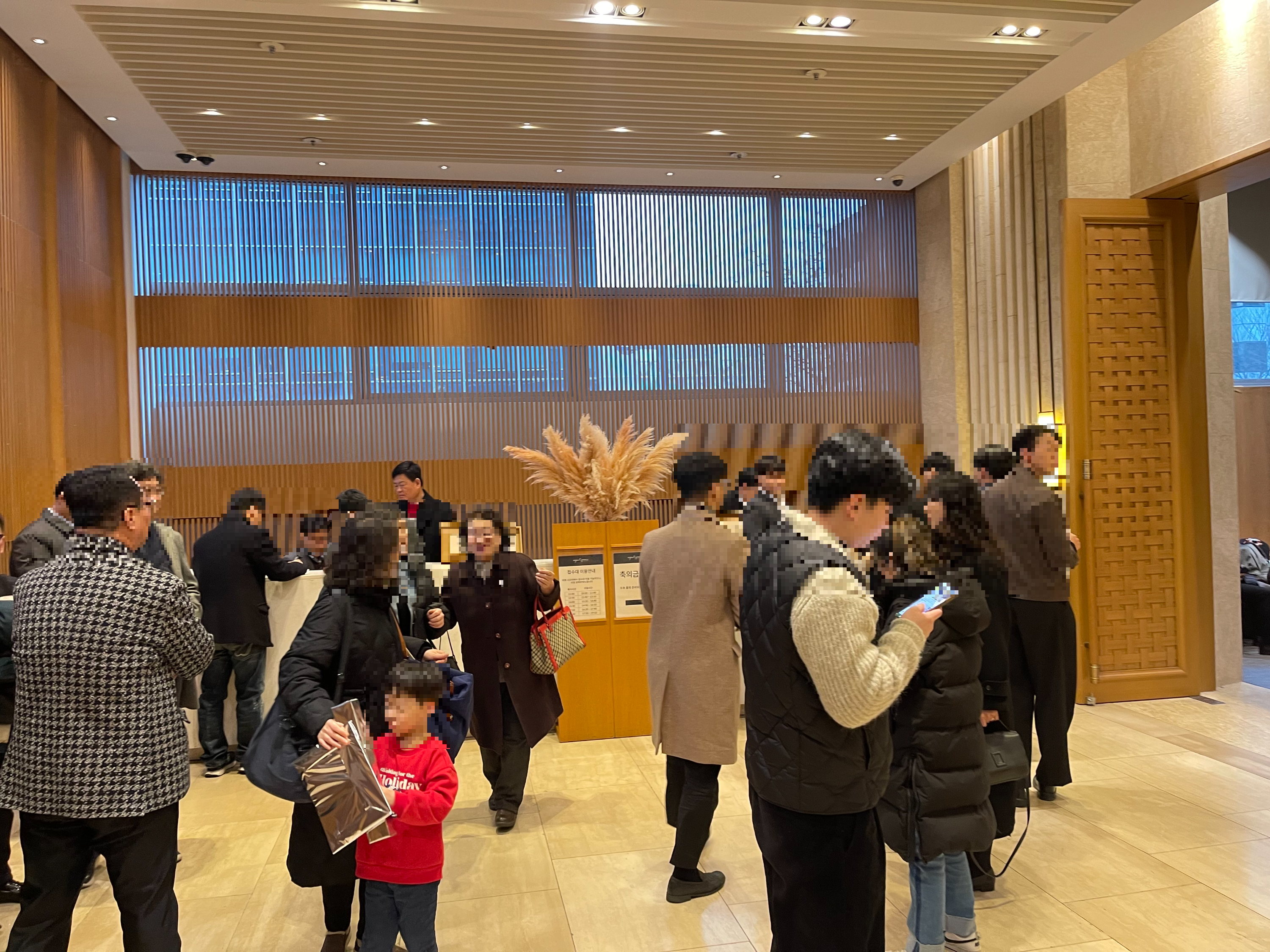 홀크기는 크지는 않고 적당한 크기를 가진 편이였어요. 다만 단독홀이여서 하객분들이 대기할 수 있는 공간은 복도까지 해서 충분히 있었어요.