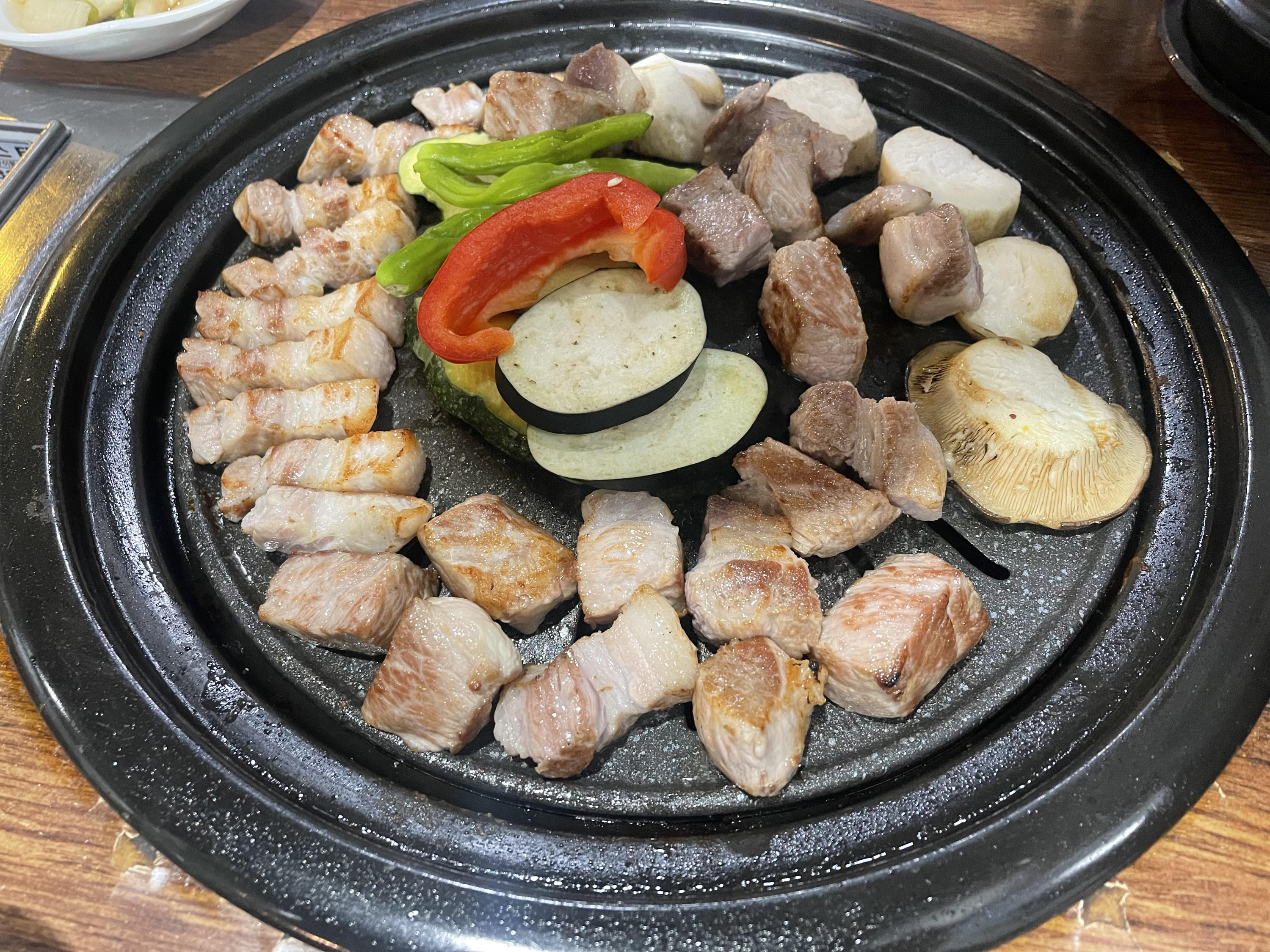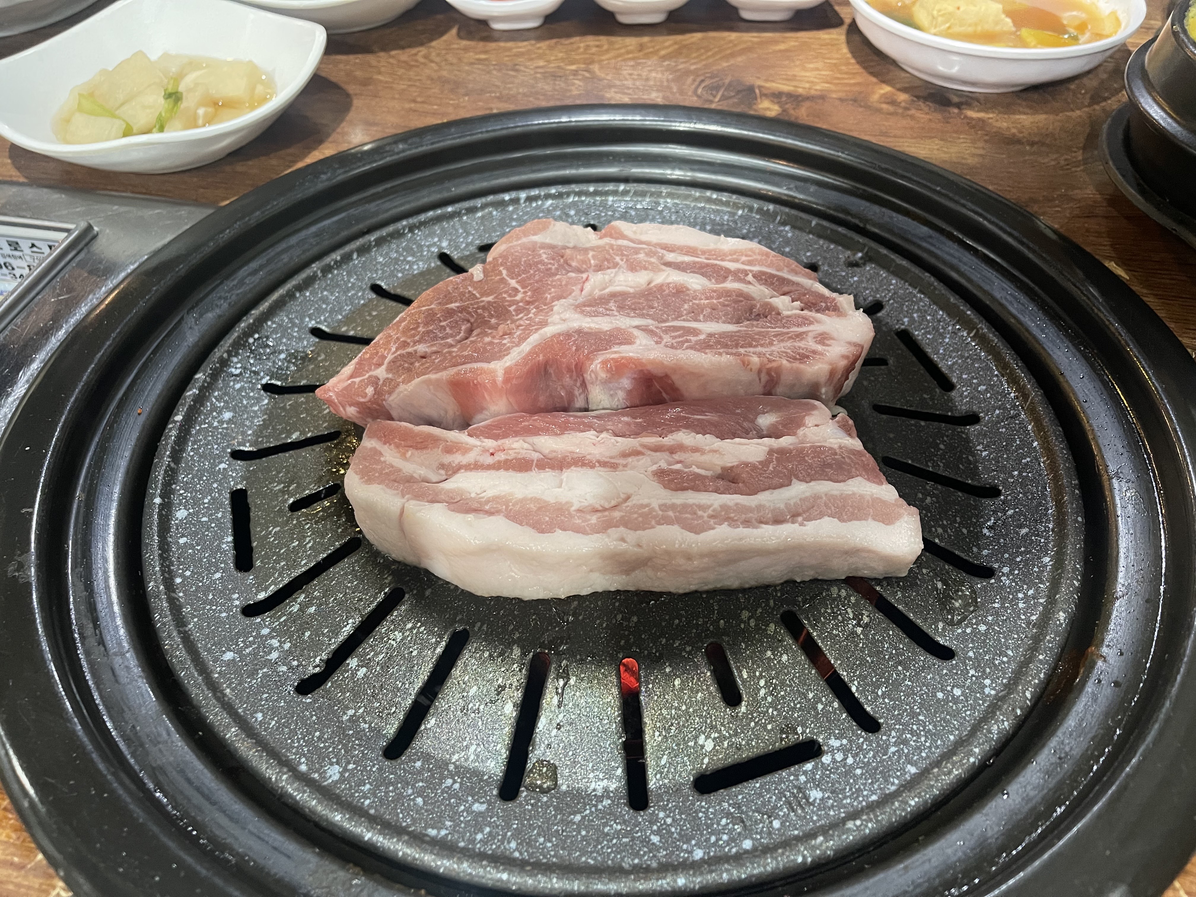 저희는 삼겹살 1인분 (15,000원 170g)과 목살 1인분(15,000원 170g)을 시켰어요. 여자친구와 둘이 먹기에는 충분한 양이었어요.