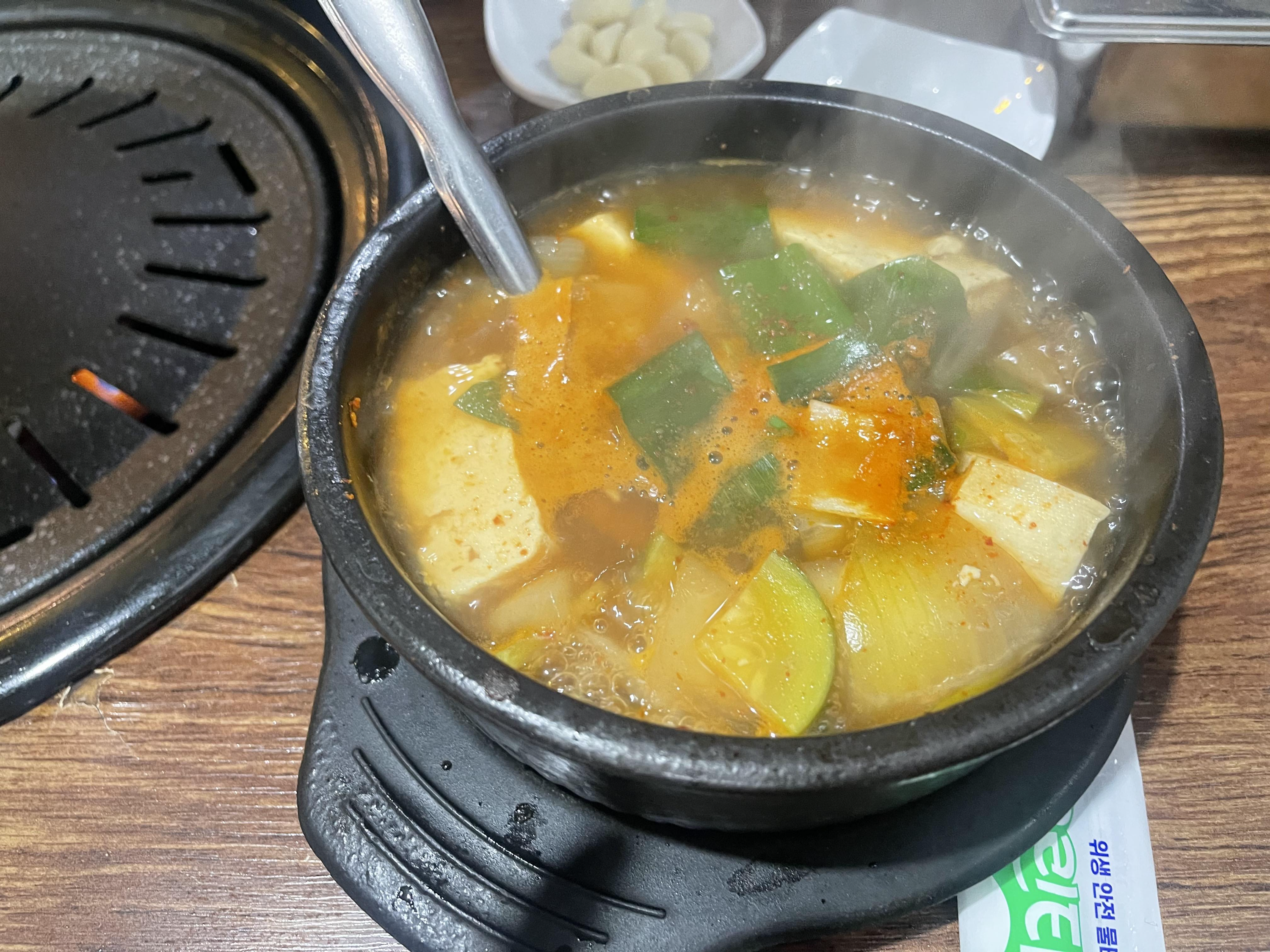 특히 된장찌게와 계란찜이 맛있었어요. 계란찜은 폭신하게 잘 만들어졌고 치즈가 올라가 있어서 풍미가 더해졌어요.