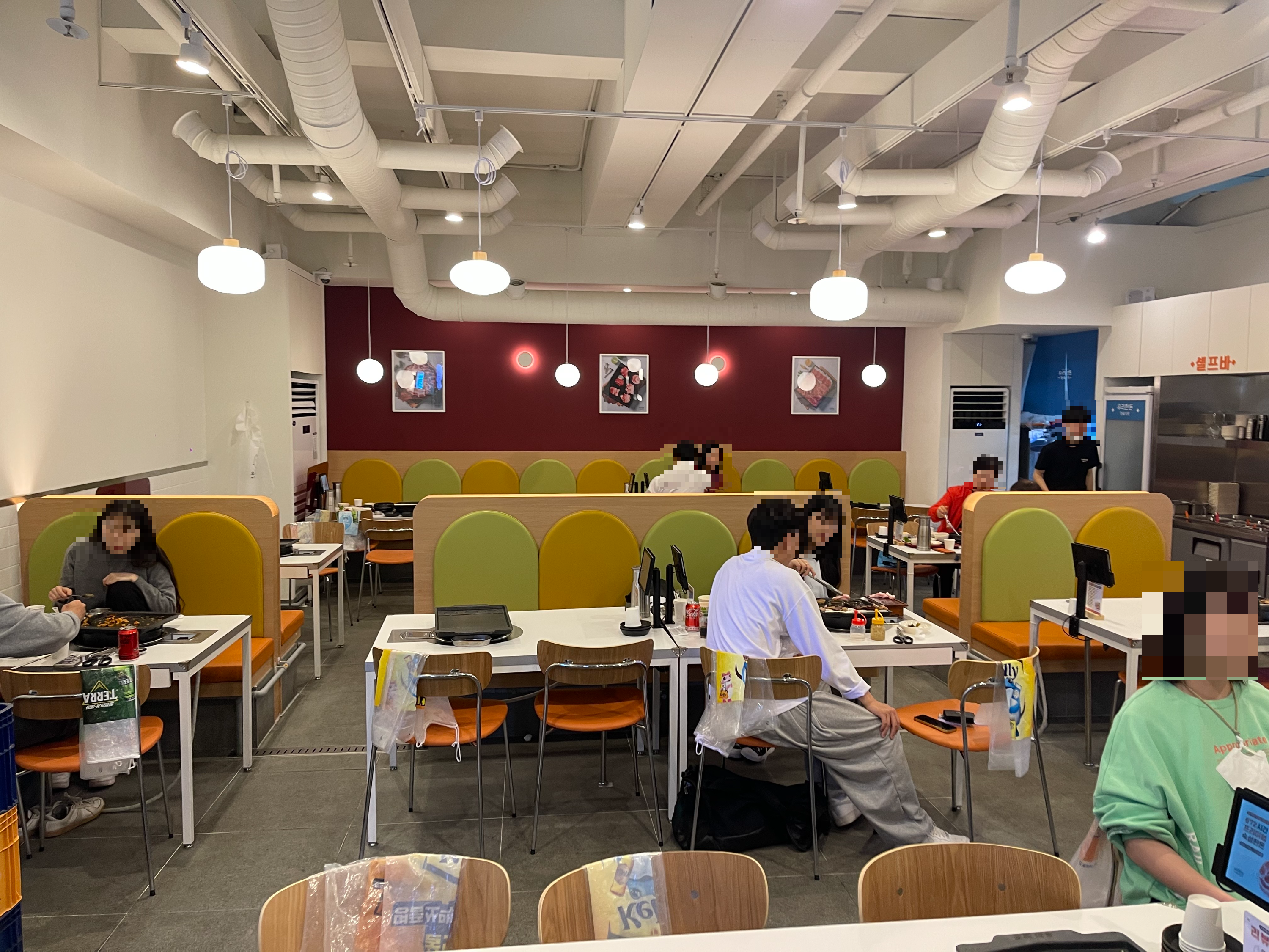 가게는 내부 모습이에요. 고깃집 치고 굉장히 밝고 깔끔한 인테리어를 가지고 있어요. 저희가 방문했던 시간이 8시 30분쯤인데도 사람이 꽤 있었어요.