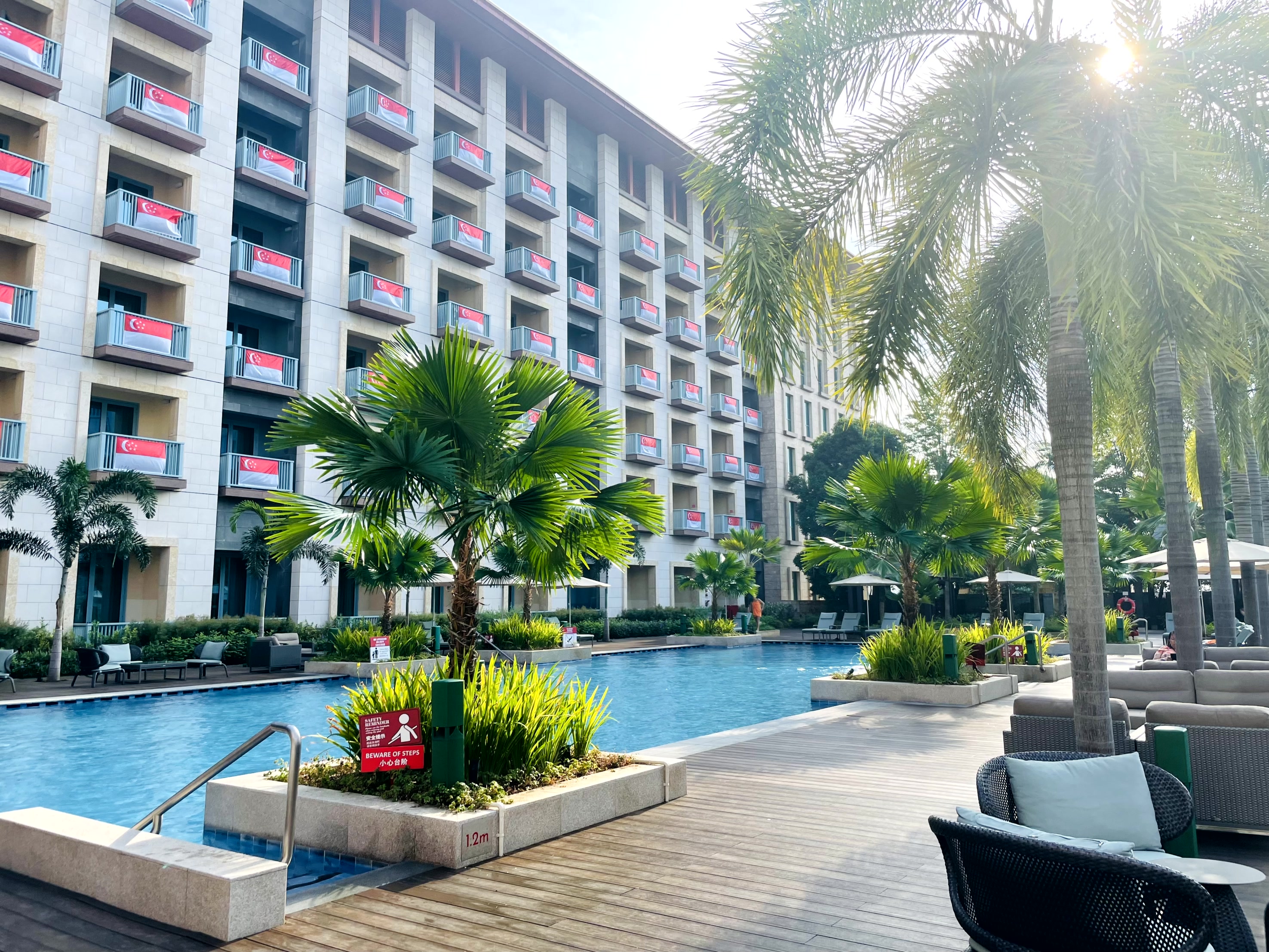 싱가포르 5성급 호텔로 센토사 섬에 위치하고 있습니다. 2024년 9월 기준 1박에 30-40만원 정도의 가격을 형성하고 있고. 저도 이 가격대로 다녀왔습니다. 조금 비싸다고 생각하실 수 있는데요, 싱가포르 호텔 가격이 워낙 비싸기도 하고 가격 만큼 훌륭한 호텔이었습니다. 또한 센토사섬에는 유니버셜 스튜디오, 유명 해변들 (실로소, 팔로완, 탄종 비치), 워터파크, 나이트 사파리 등 다양한 즐길거리가 있기 때문에 위치상 이점도 있습니다.