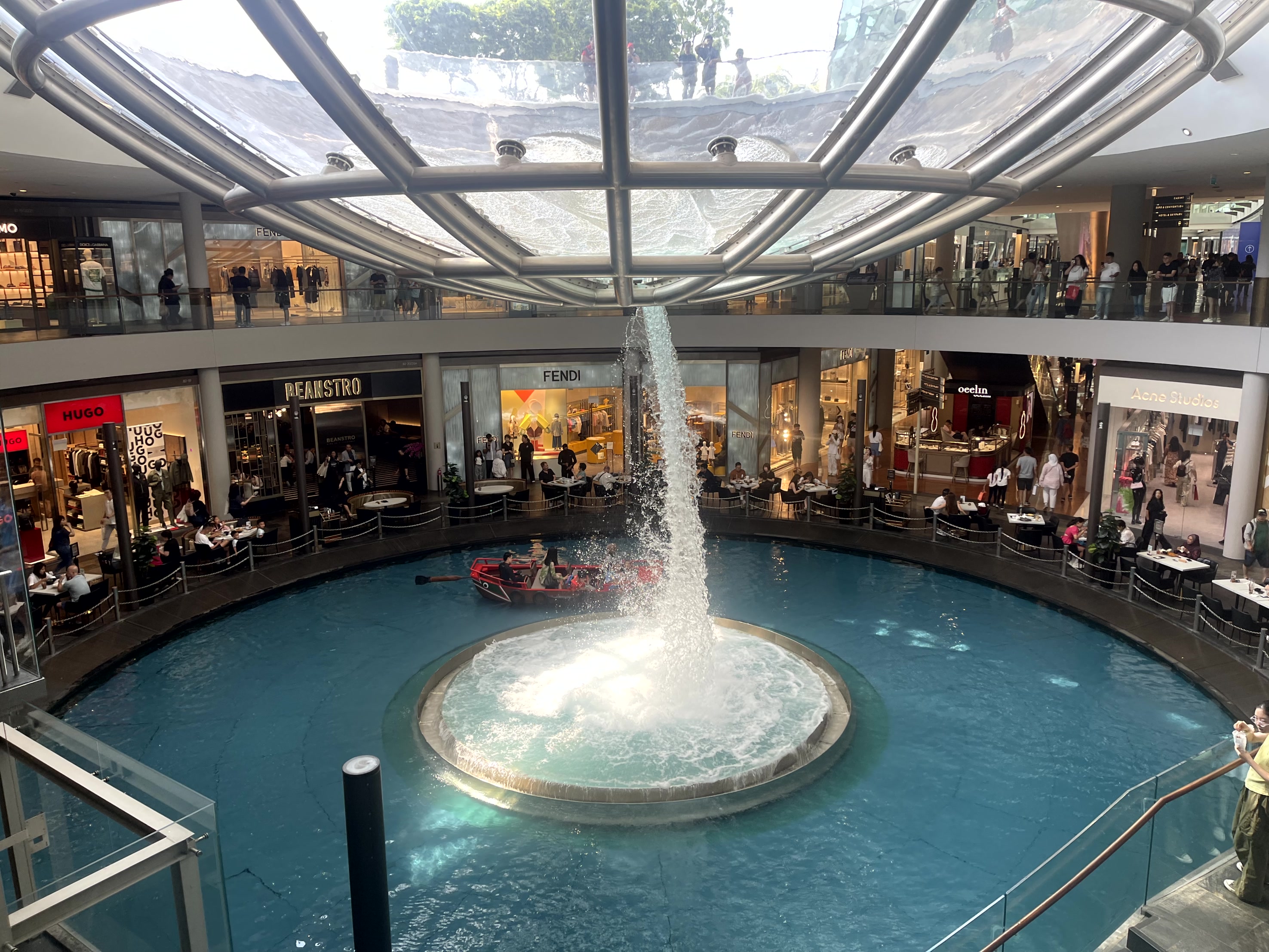 쇼핑물은 상당히 넓고 여러층으로 돼있는데요, 이 폭포를 기준으로 방향을 파악할 수 있어요.