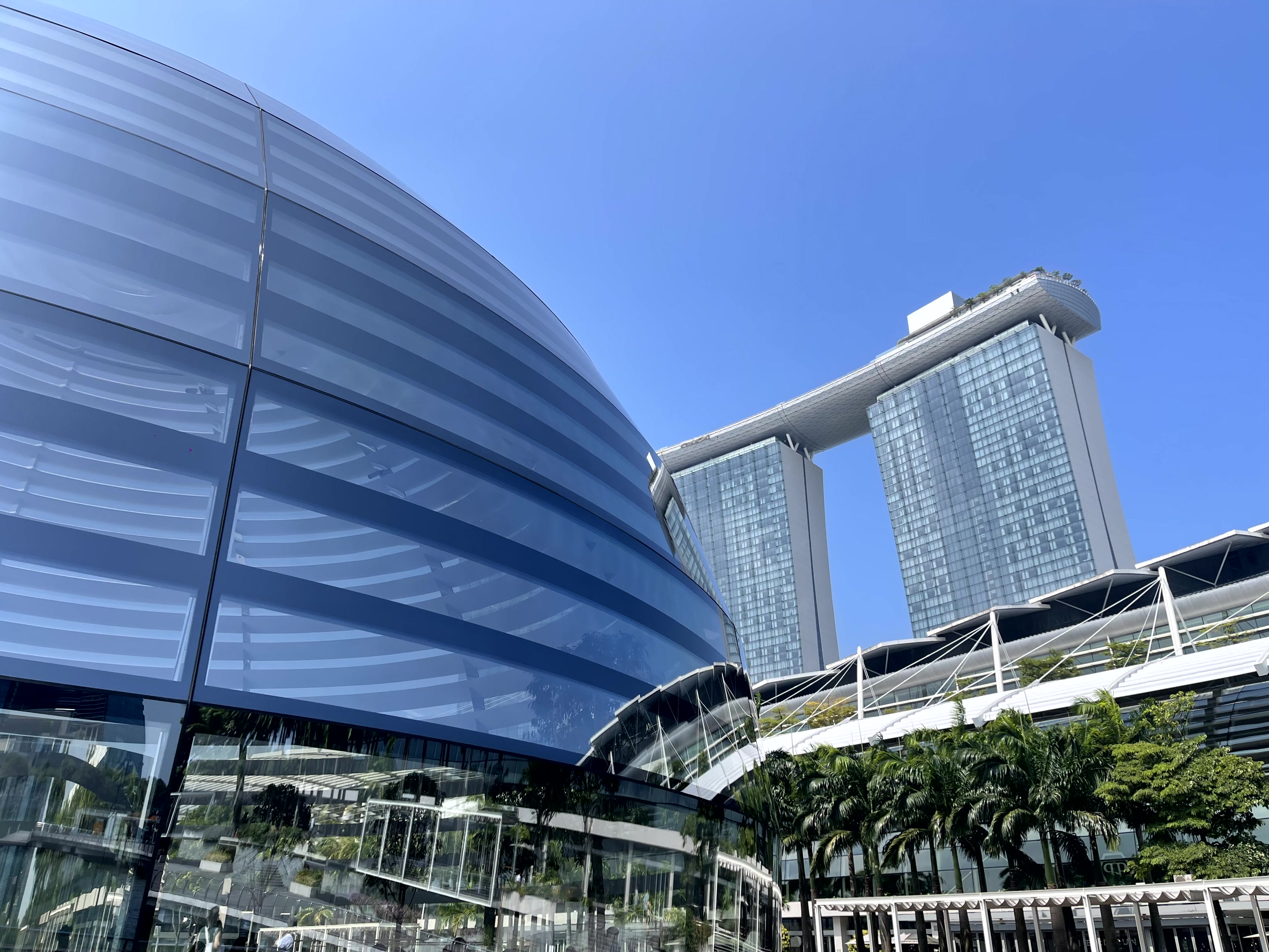 마리나 베이 샌즈에 있는 애플스토어는 원형 돔 형태로 생긴 특이한 구조를 가지고 있어요.