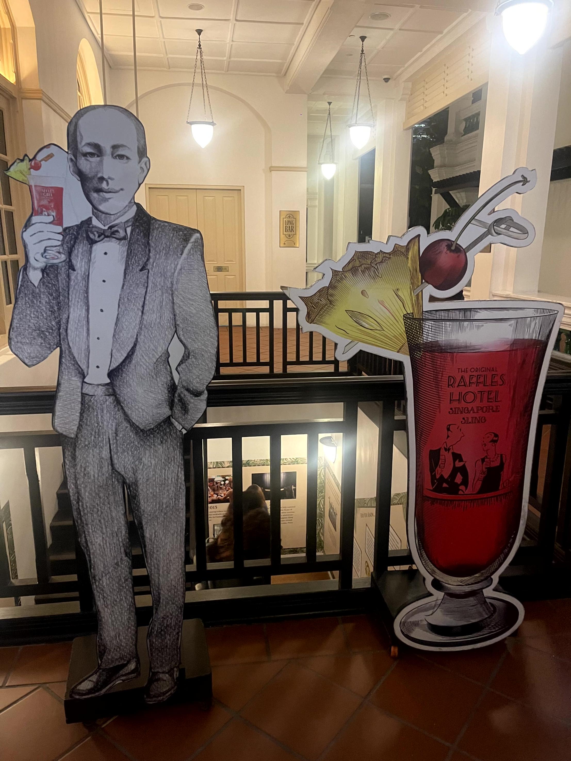 매장 입구에는 싱가폴슬링을 최초로 개발했다고 알려진 응이암통분 바텐더의 입간판이 있습니다.